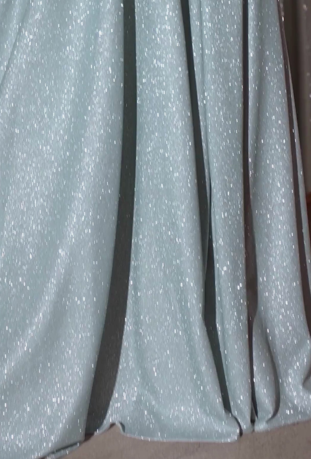 This enchanting A-line gown shimmers with every step, featuring a strapless scoop neckline and a delicately gathered bodice for an effortlessly elegant look. The pleated skirt flows beautifully, enhanced by a leg slit for a hint of drama, while the lace-up corset back ensures a perfectly sculpted fit. Crafted from glitter-dusted fabric, this gown is a radiant choice for prom or any formal occasion.