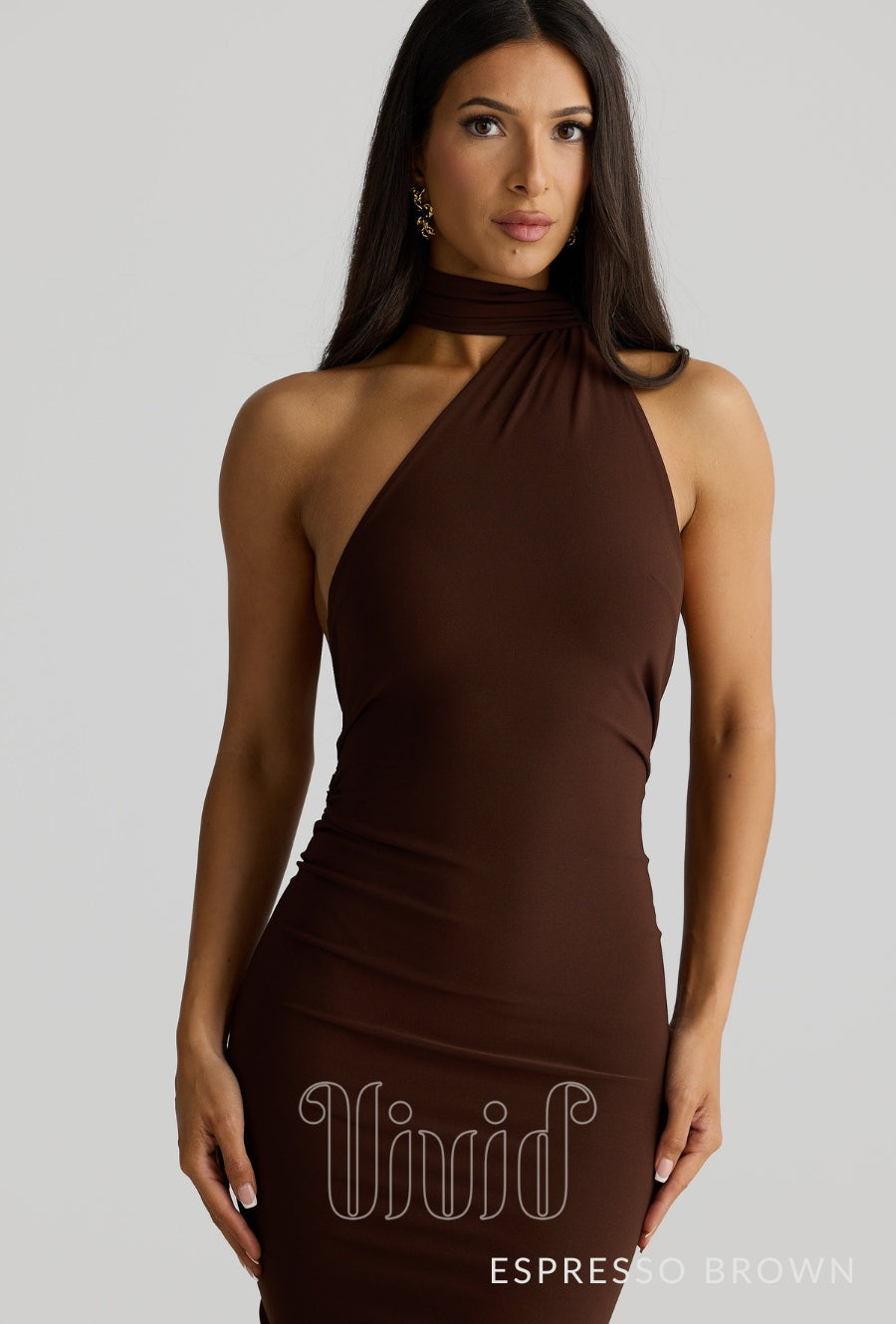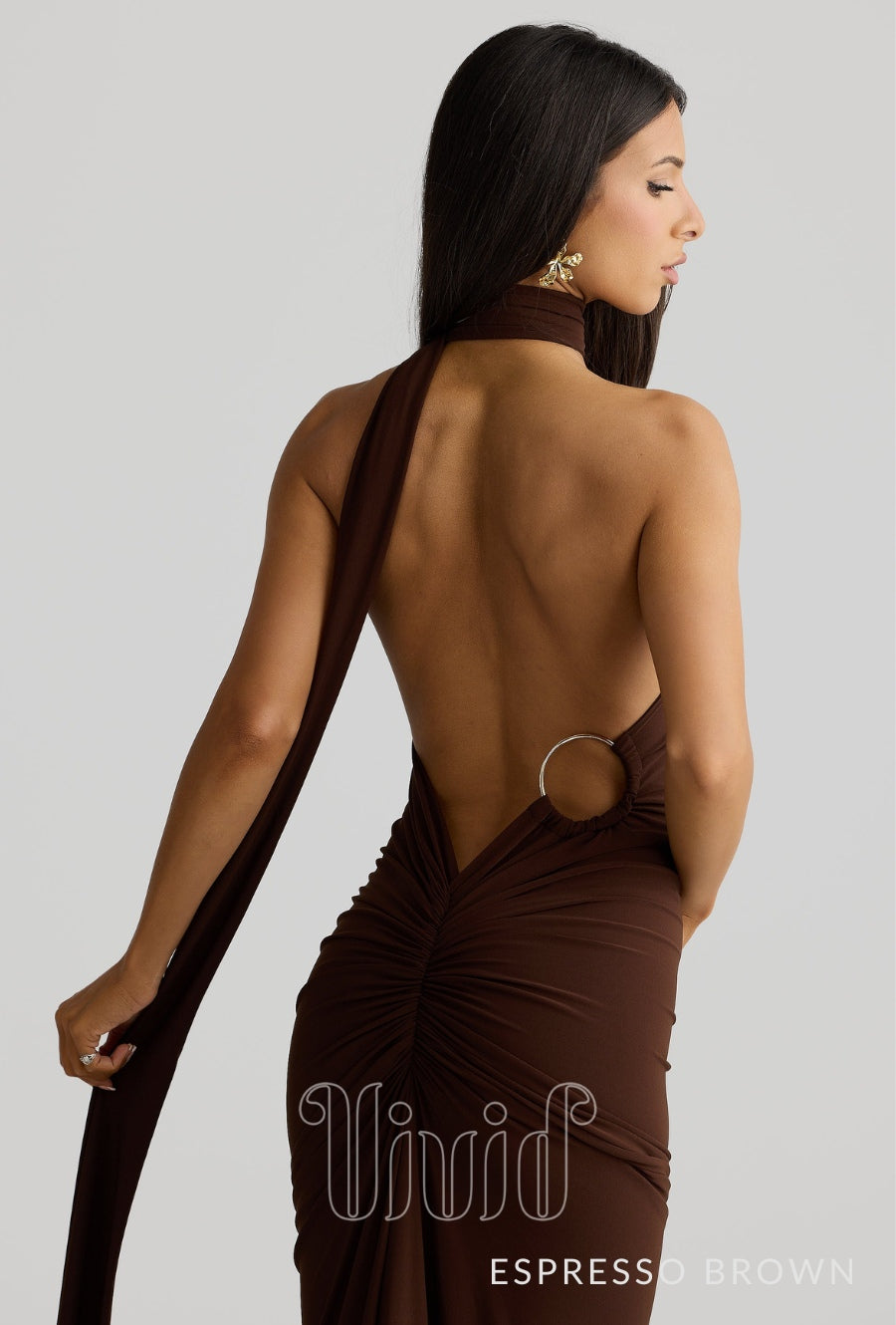 Melani The Label Constantina Gown in Espresso Brown / Nude & Neutrals
