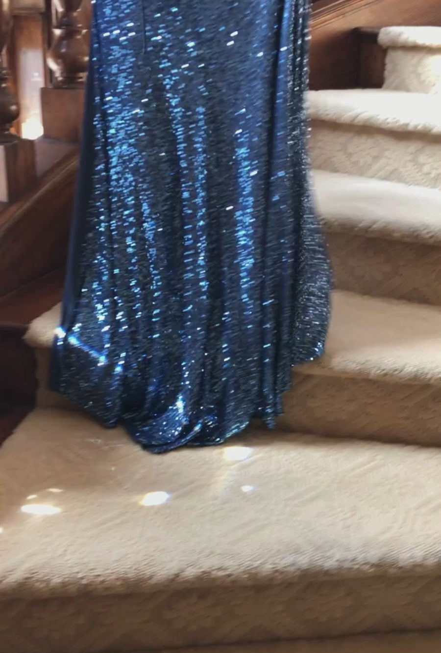 This sensational evening gown is crafted out of stretch sequin fabrication and features a V neckline, side gather detailing and boned bodice. The gown also features a dramatic open back with lace up and gather detailing, thigh high front side split and a small train.