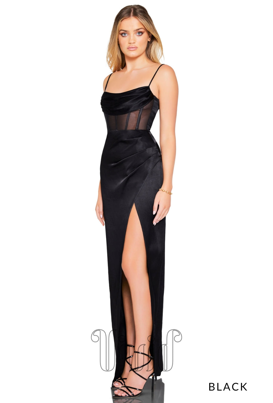 Look & feel flawless in this striking floor length design. This gown is crafted from a luxe satin and features a gorgeous draped bust, sheer mesh panels at the waist & a thigh high split. The dress also features a zip closure at the centre back. PROUDLY DESIGNED AND MADE IN AUSTRALIA.