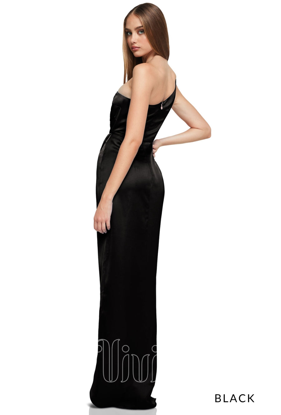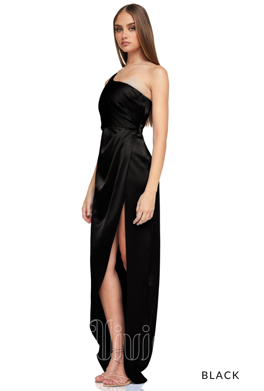 This classic one shoulder gown is crafted from a luxe satin features flattering tucks & gathers at the side and a sexy thigh high split. PROUDLY DESIGNED AND MADE IN AUSTRALIA.