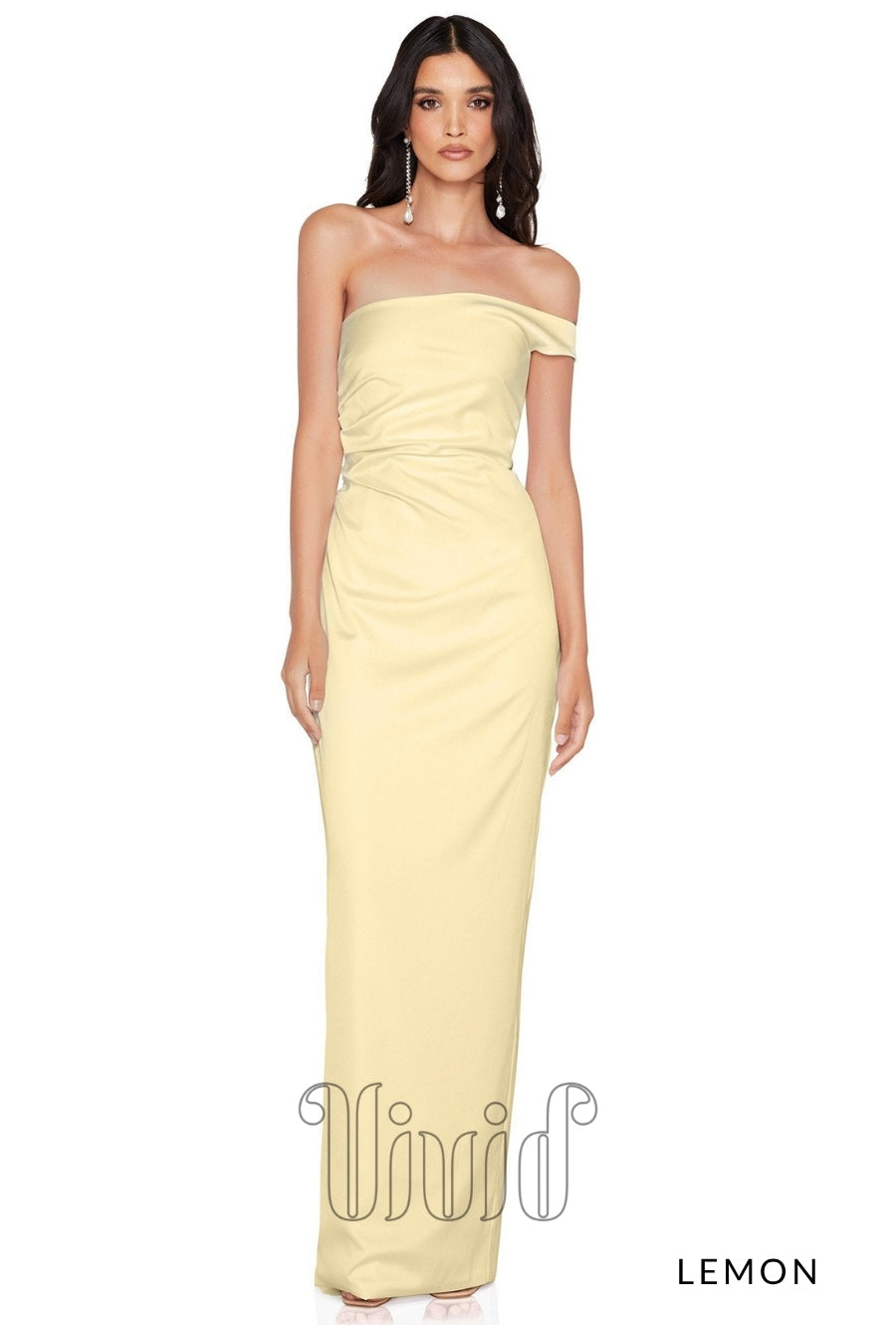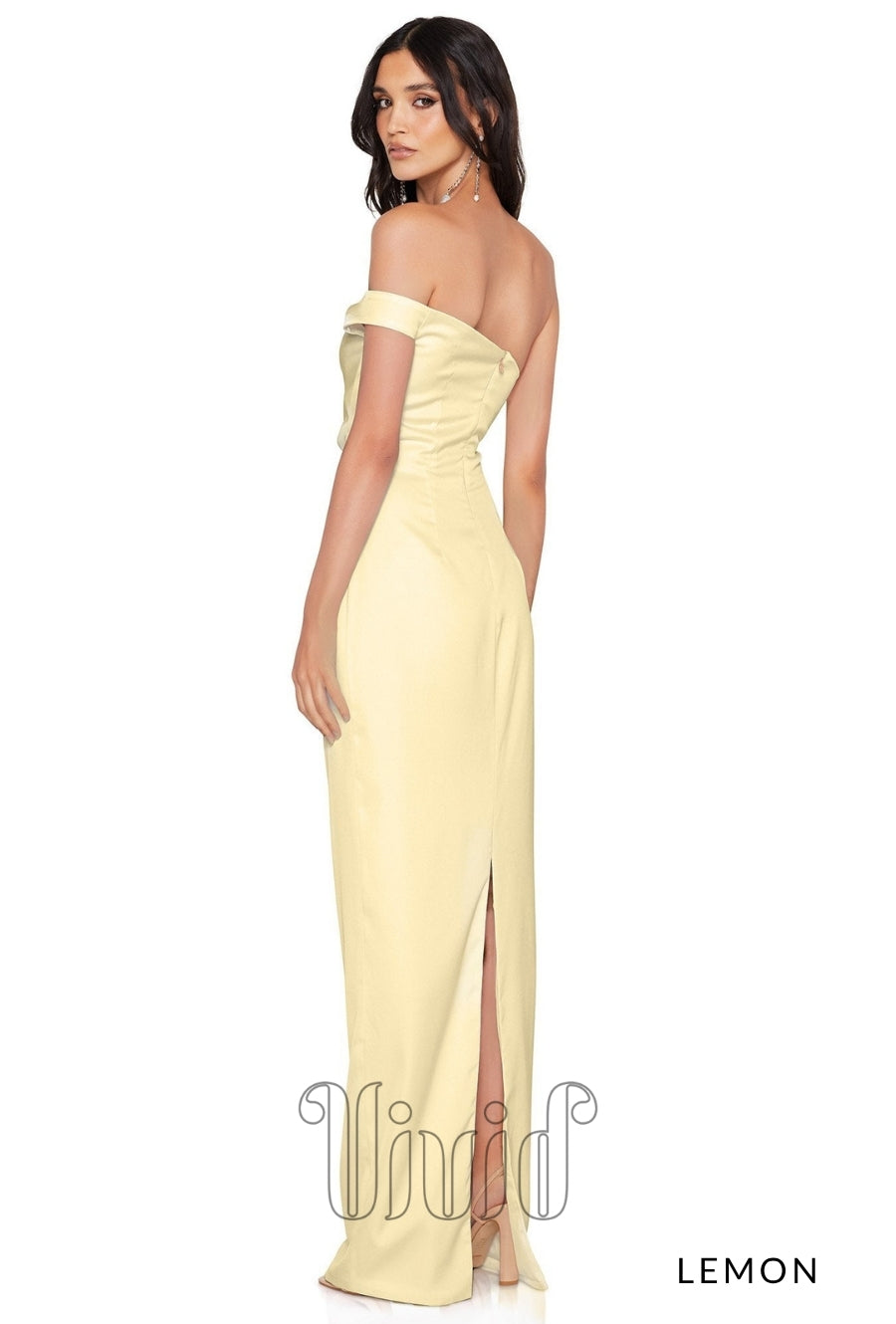 Leave a lasting impression with the timeless cut of this gown. This gown is crafted from a luxurious satin fabrication and features soft tucks & gathers at the side waist, an asymmetrical off-shoulder strap and split at the back hem for ease of wear. The dress also features an invisible zip closure at the centre back.