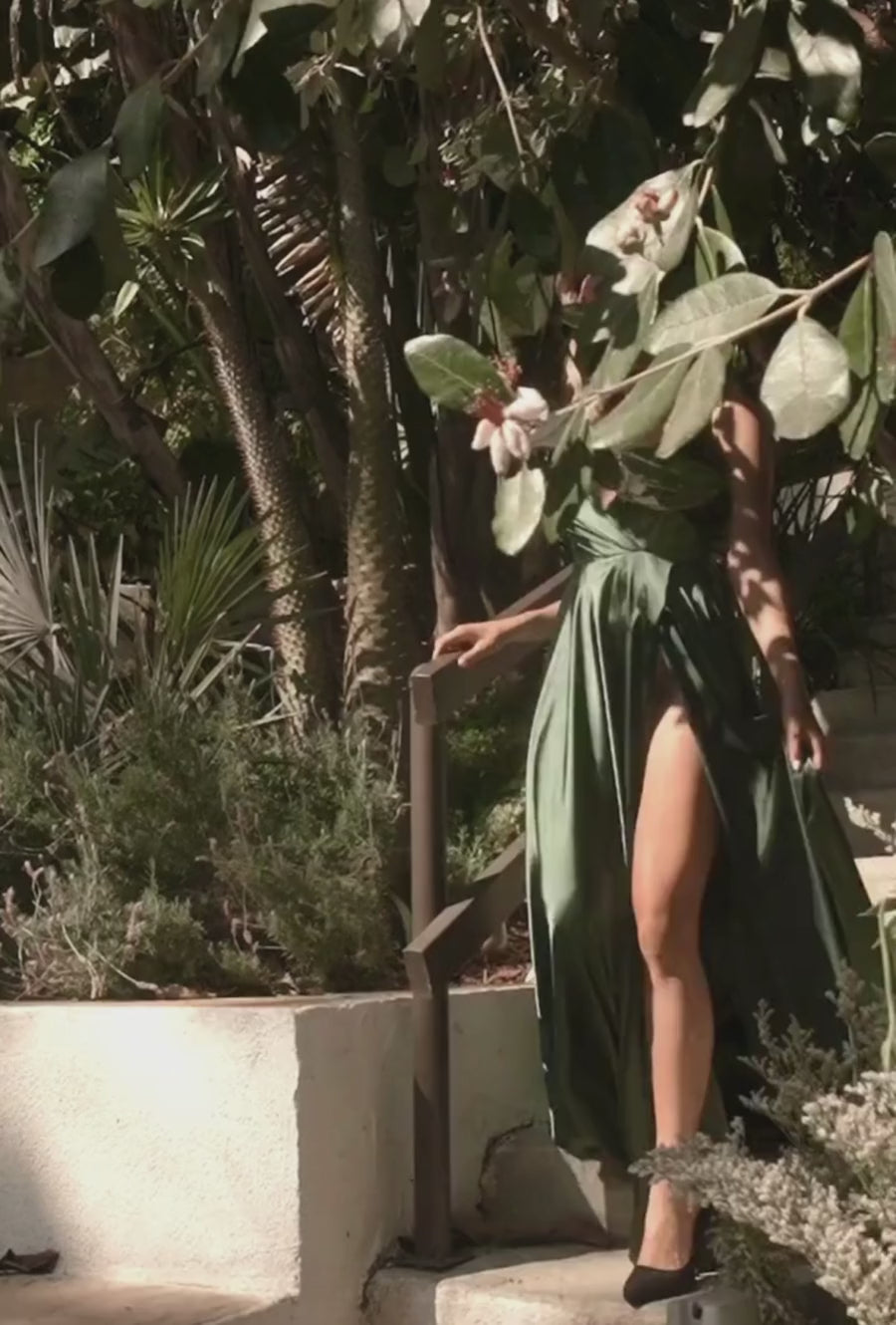 This gorgeous evening gown is a perfect balance of classy refinement and playful sensuality. The dress is crafted from satin and features a V neckline, pin tuck detailed crossover bodice. This floor-sweeping silhouette makes a beautiful addition to the bridal party, while the adjustable shoulder tie that controls the waistline height helps ensure it fits a range of body types. The dress also features a flowy skirt with a dramatic leg slit, this makes a great option for all figures, including the maternity bridesmaid.