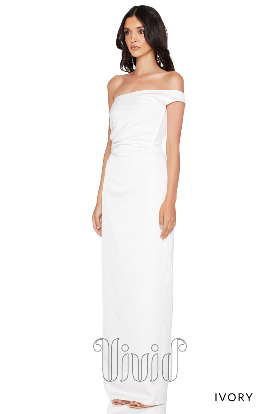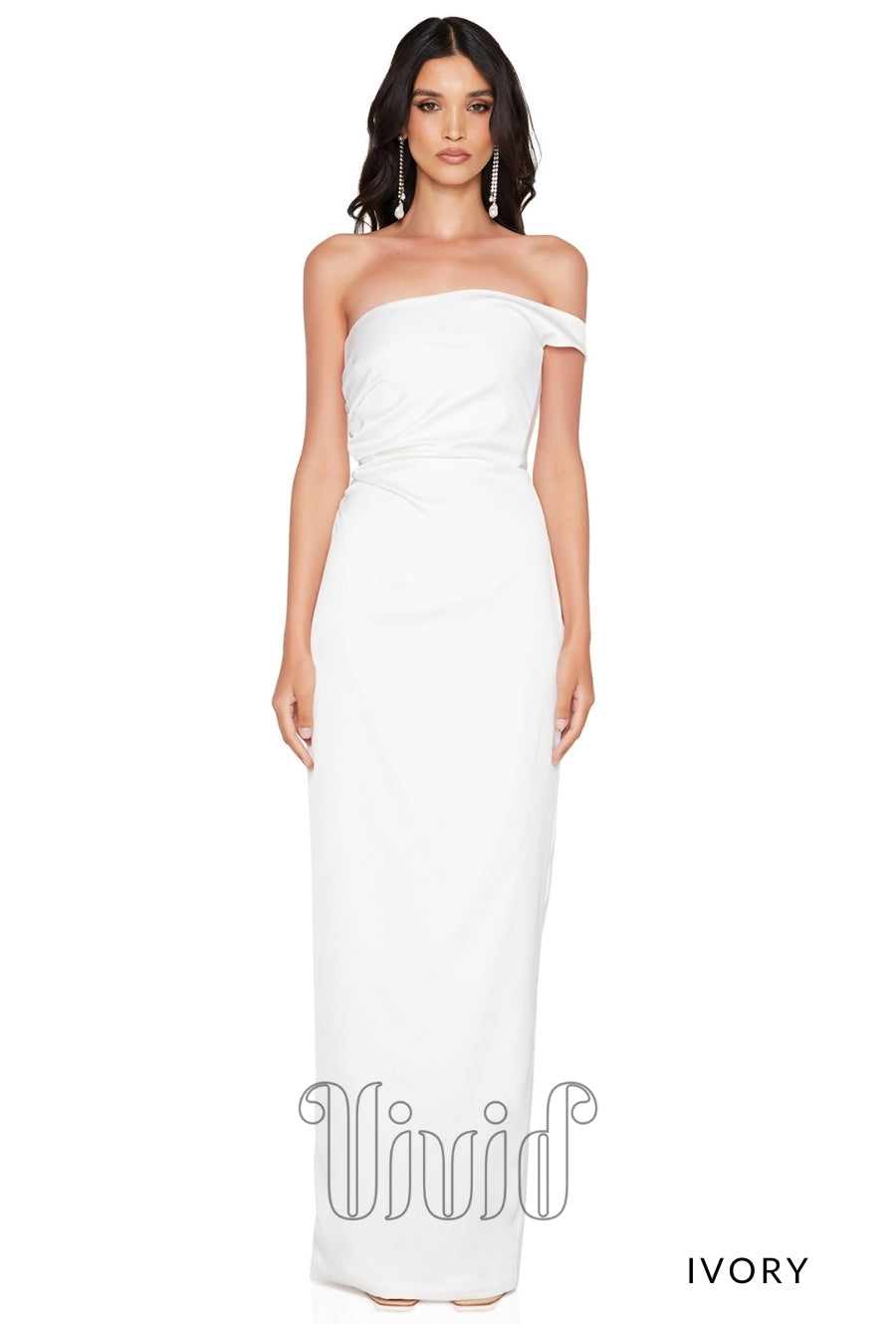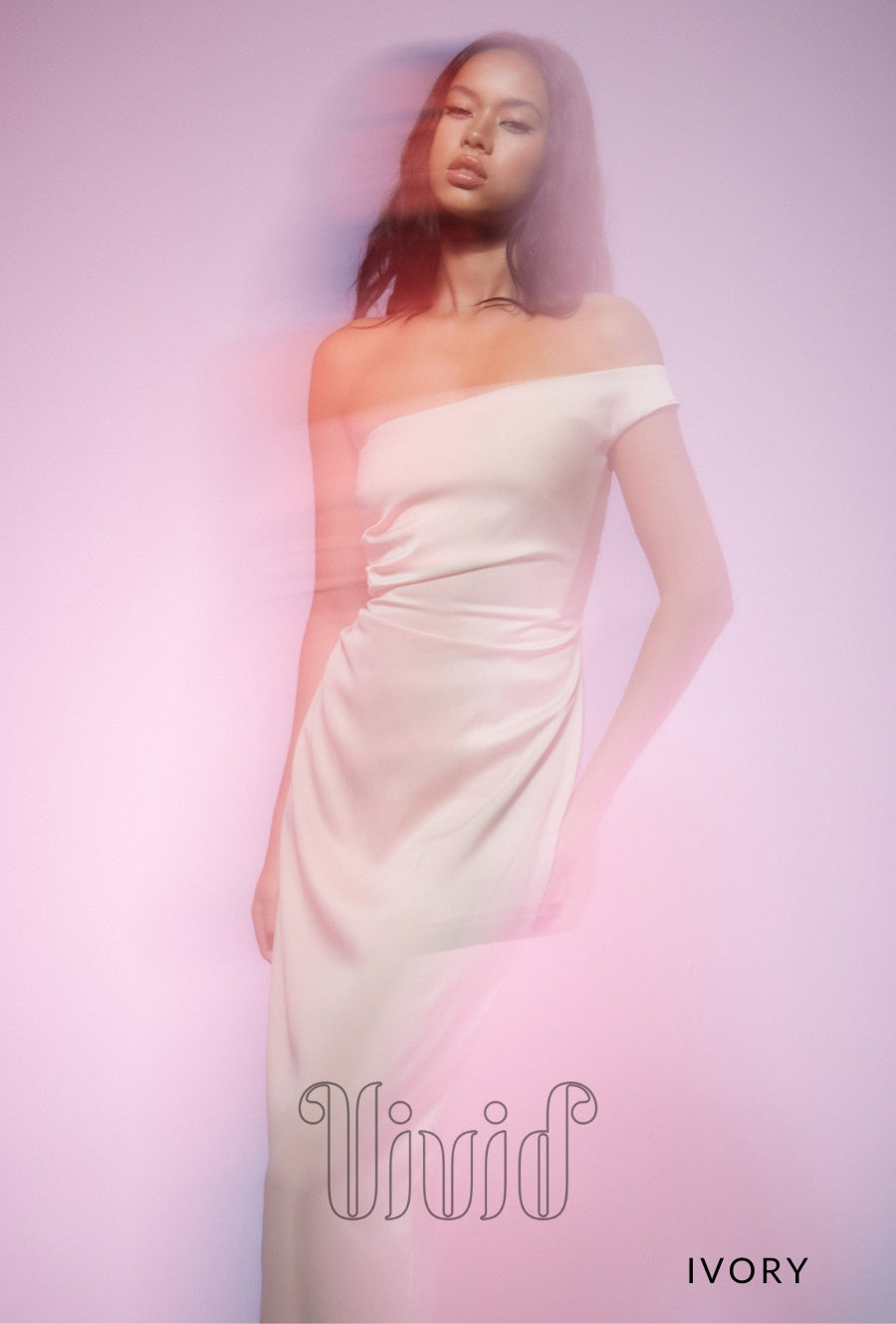 Leave a lasting impression with the timeless cut of this gown. This gown is crafted from a luxurious satin fabrication and features soft tucks & gathers at the side waist, an asymmetrical off-shoulder strap and split at the back hem for ease of wear. The dress also features an invisible zip closure at the centre back.
